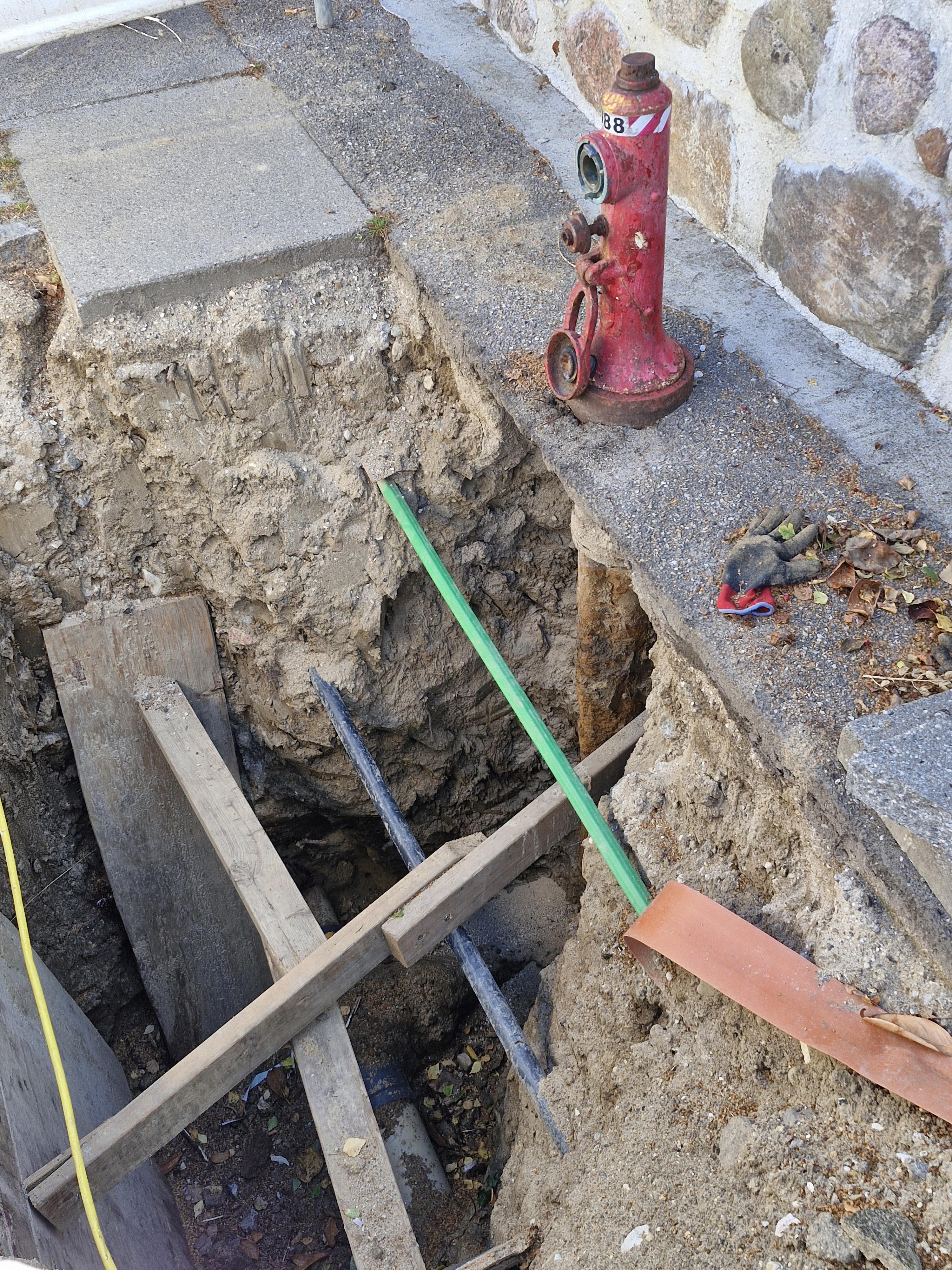 Vandbrud, maj 2015, Møllevej ved Brillantvej. Bemærk, hvor dybt der graves: