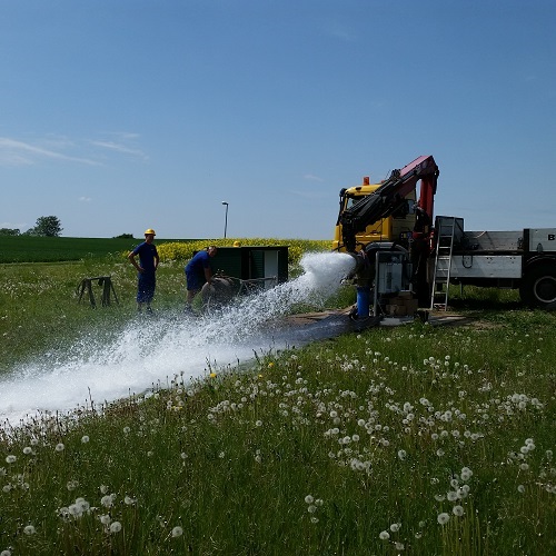 Vandværket, august 2009, boring 3 skylles igennem efter afsyring