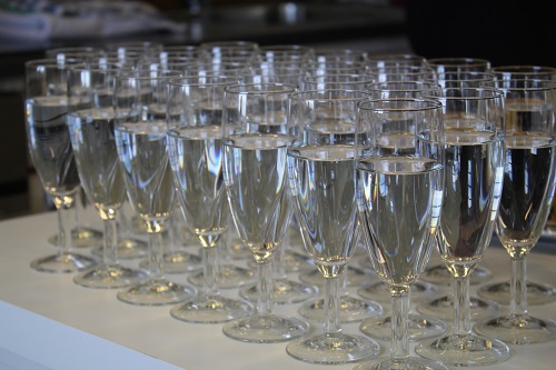 Glas med klart postevand linet op til fejring af skovrejsning: