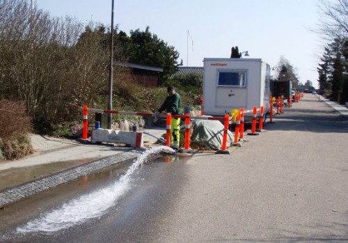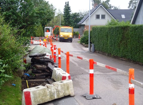 Tværvej, juni 2009, vandbrud i forbindelse med ledningsrenovering: